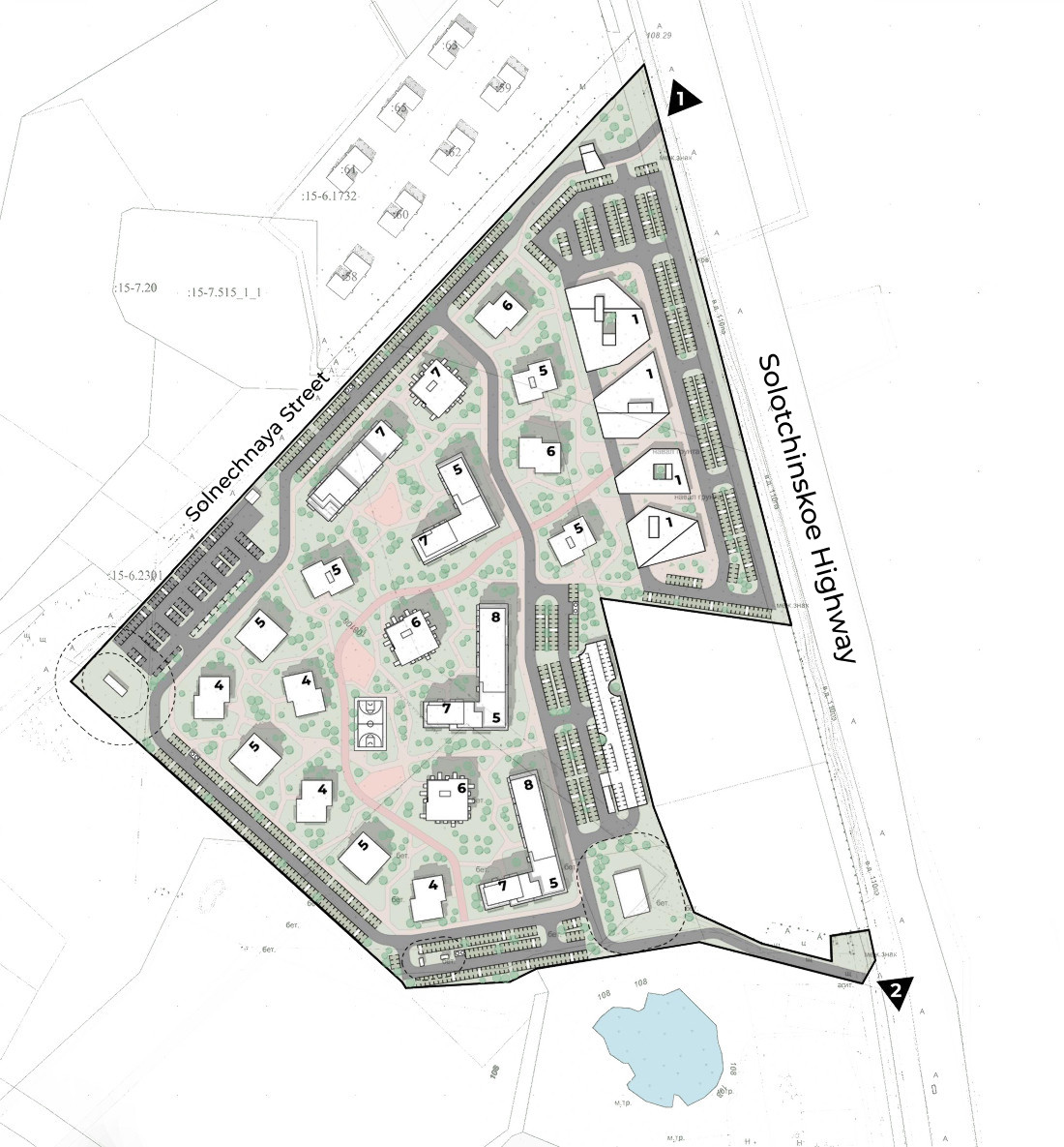 Projekt oparty jest na dwóch kluczowych obrazach — historii miejsca oraz charakterze przyrodniczym działki. Srebro, symbol Riazania jako centrum sztuki jubilerskiej i miasta skarbów, oddaje wartość oraz więź z dziedzictwem. Architektoniczna metafora osiedla to polana: wspólna zielona przestrzeń pośrodku, otoczona swobodnie stojącymi budynkami, jak drzewa. W ten sposób powstaje spójne i żywe środowisko, w którym historia i natura stanowią fundament współczesnej architektury.