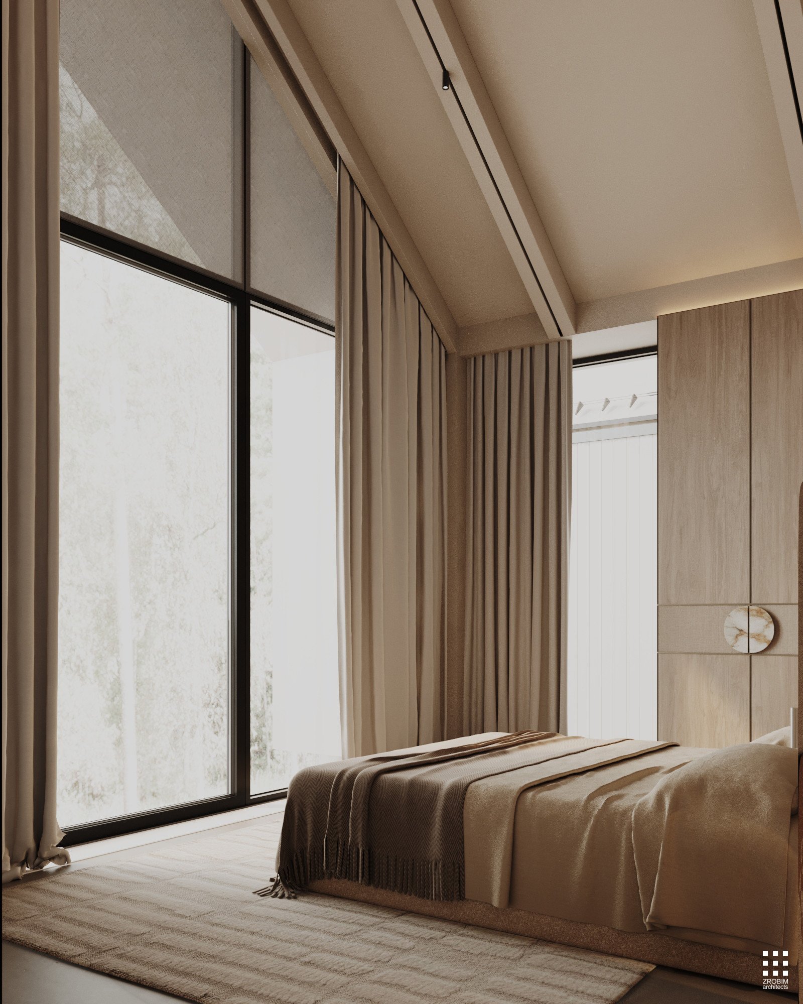 Złożone, materiałowe wnętrze o przestrzennej plastyczności, w którym światło i faktura odgrywają kluczową rolę. W tej dużej przestrzeni celem było stworzenie nie tylko imponującego wizualnie wnętrza, ale także harmonijnego połączenia komfortu i luksusu, w którym skala nie przytłacza, a wręcz przeciwnie – nadaje przestrzeni atmosferę prywatności i komfortu.